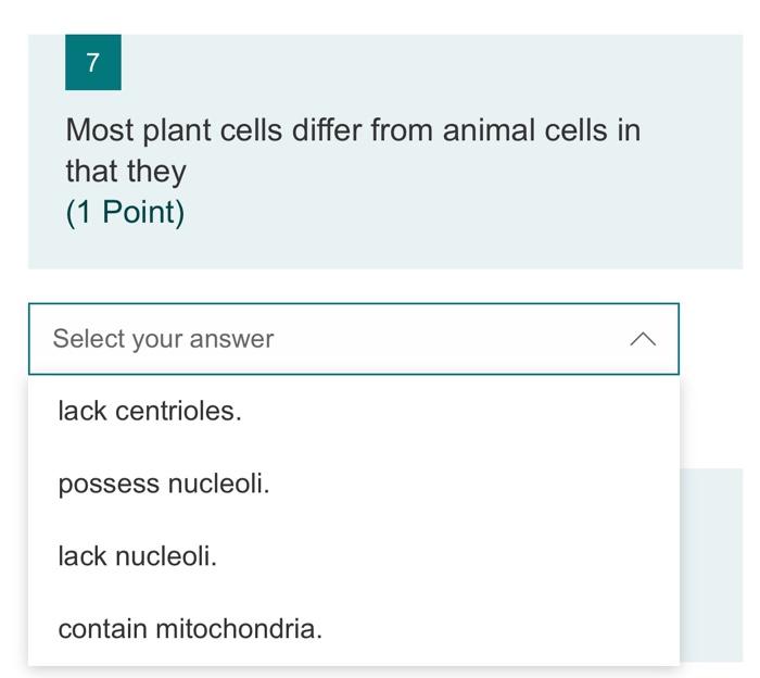 Most plant cells differ from animal cells in that they. We did not find results for: Check spelling or type a new query. Maybe you would like to learn more about one of these?